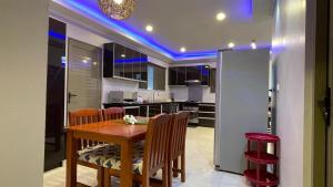 Das Schlafzimmer ist mit drei Betten und einem Ventilator ausgestattet und bietet zusätzlich Schallschutz für erhöhten Komfort. Die Küche beinhaltet einen Herd, Backofen, Geschirrspüler, Kühlschrank sowie Küchenutensilien zur Zubereitung von Mahlzeiten. Der Wohnbereich verfügt über Parkettboden, Sitz- und Essbereiche, einen Flachbildfernseher mit Kabelkanälen sowie eine Waschmaschine. Das Badezimmer ist mit einer Dusche ausgestattet und stellt Shampoo sowie Seife bereit.